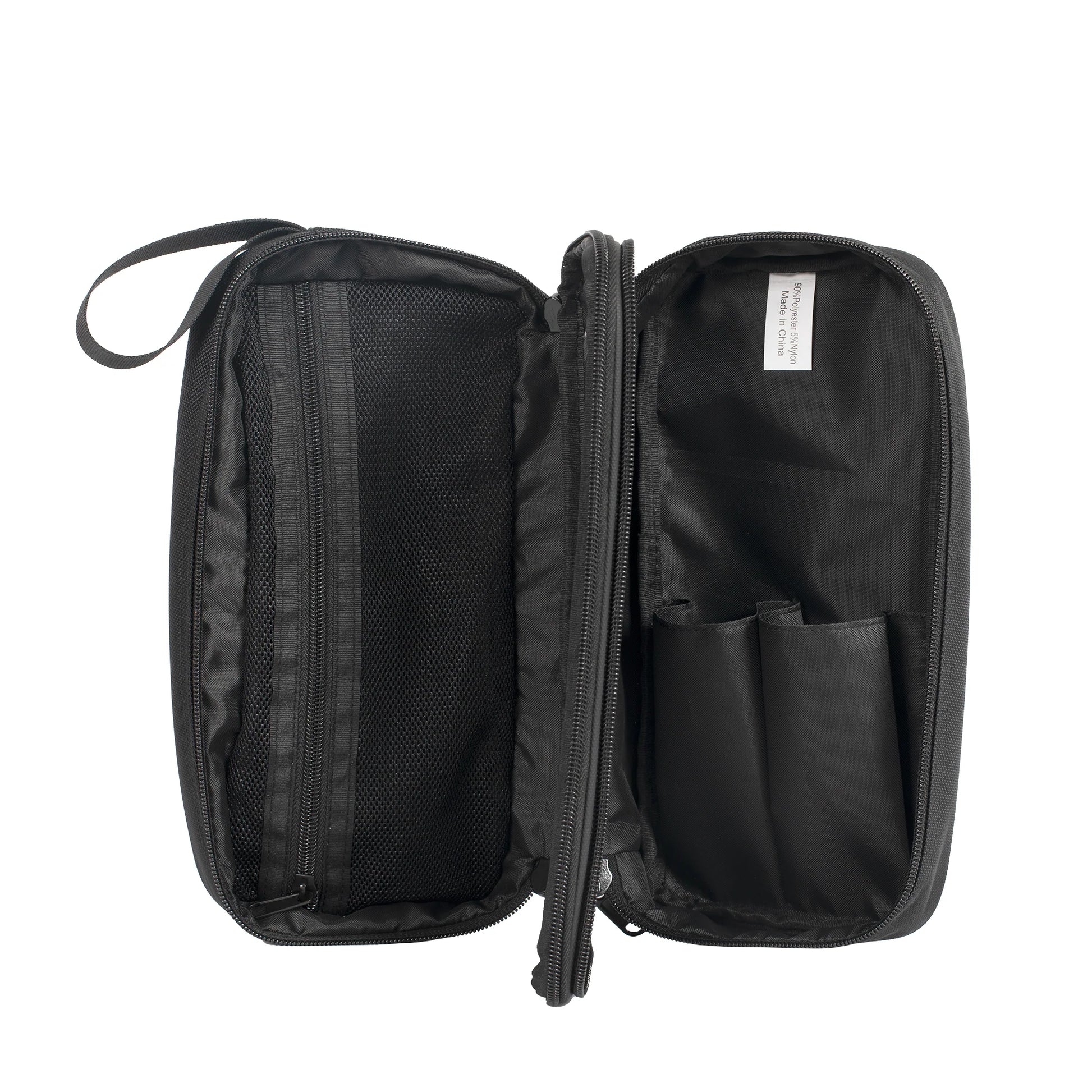 - Bifold zippered storage compartments